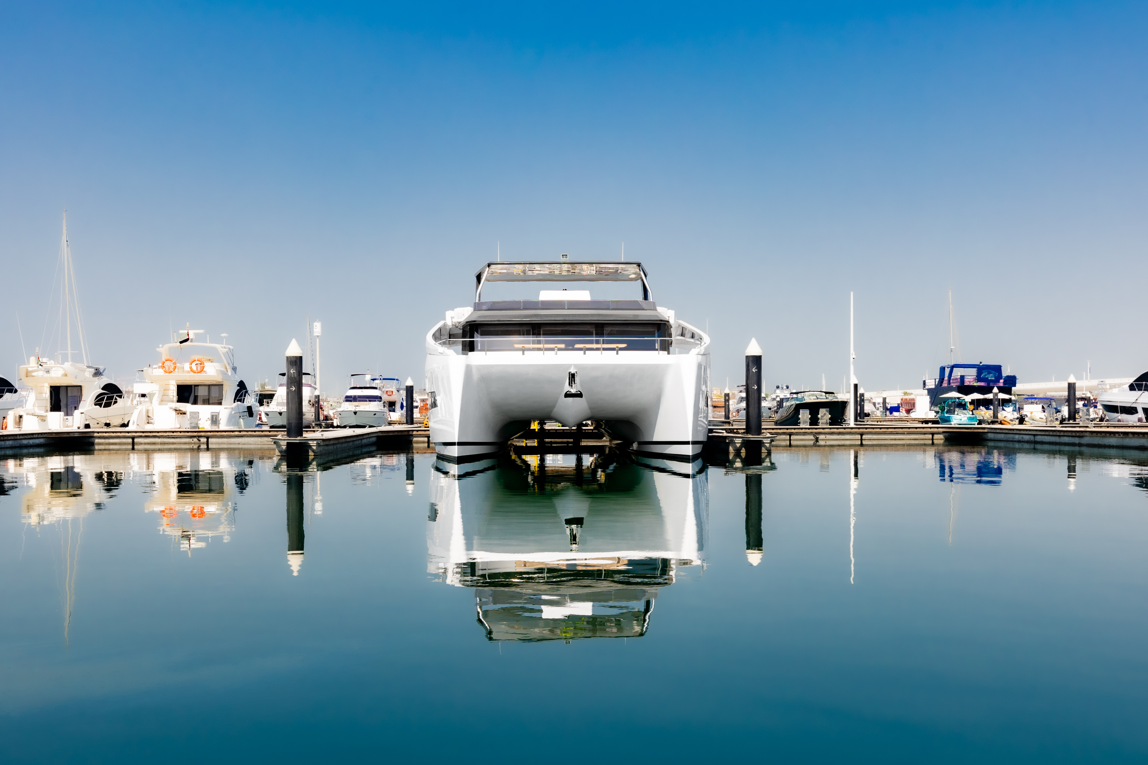 The first Oceanwalker S60 catamaran luxury yacht launching successfully will be unveiled at Abu Dhabi International Boat Show