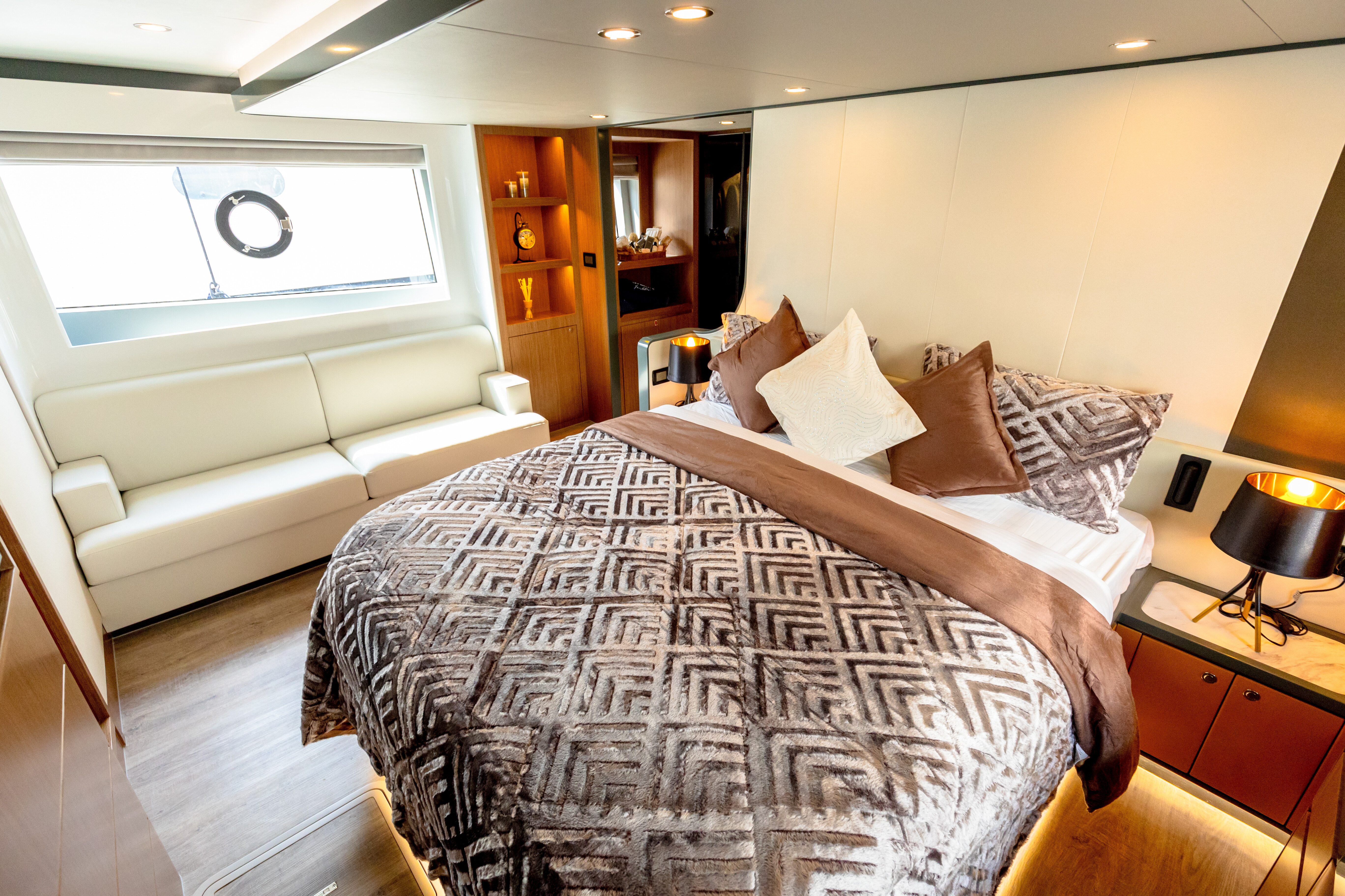 Step aboard and immerse yourself in the embrace of spacious cabins and exquisitely designed interiors that offer unrivaled comfort and sophistication. With four beautifully appointed cabins and salon space, your yachting experience is elevated to the highest level of luxury and comfort.