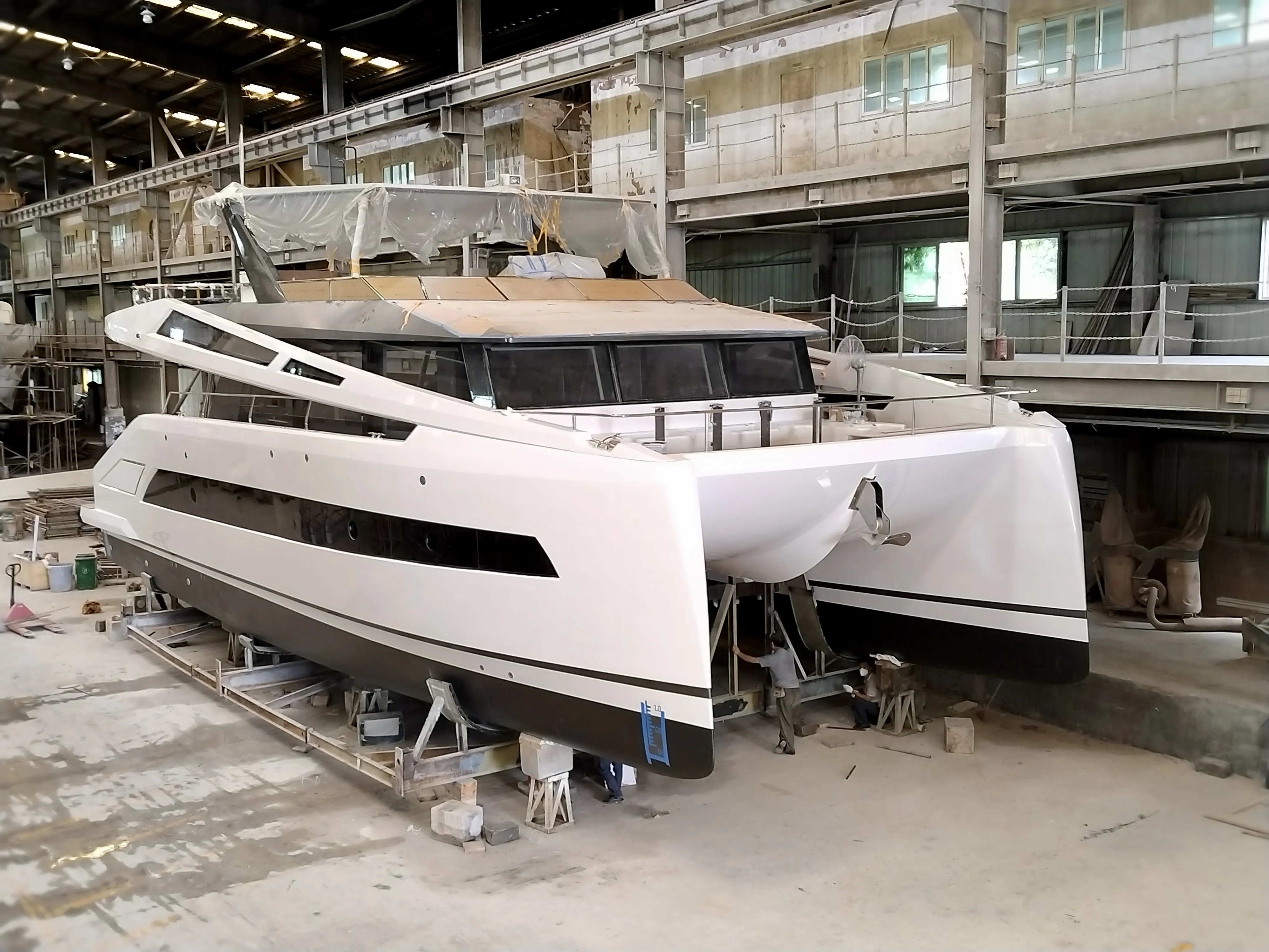 The first Oceanwalker S60 catamaran luxury yacht launching successfully will be unveiled at Abu Dhabi International Boat Show