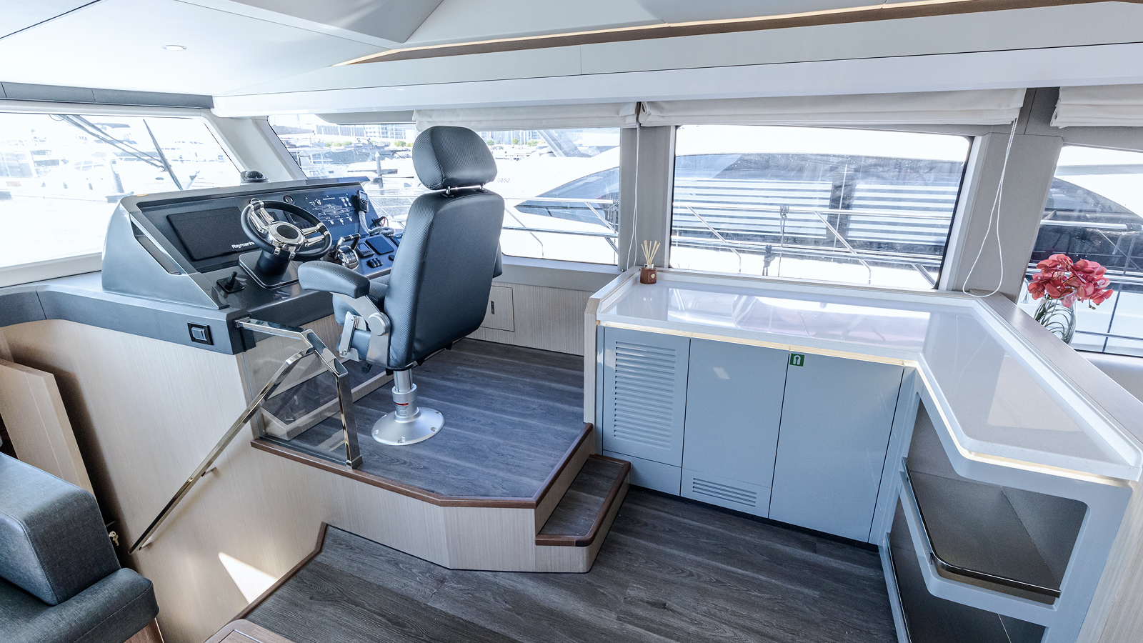 The outdoor recreation area also provides an open-air viewing area to enjoy the sunshine.In addition to the classic indoor helm station on the main deck, the salon area has an exquisite and elegant style.