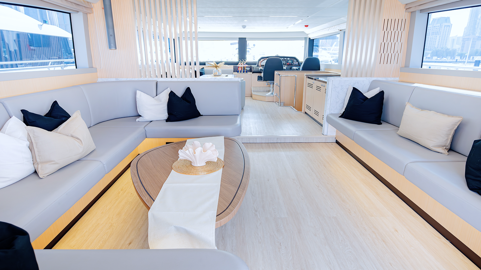 Luxurious Comfort Step aboard and immerse yourself in the embrace of spacious cabins and exquisitely designed interiors that offer unrivaled comfort and sophistication. With four beautifully appointed cabins and salon space, your yachting experience is elevated to the highest level of luxury and comfort.
